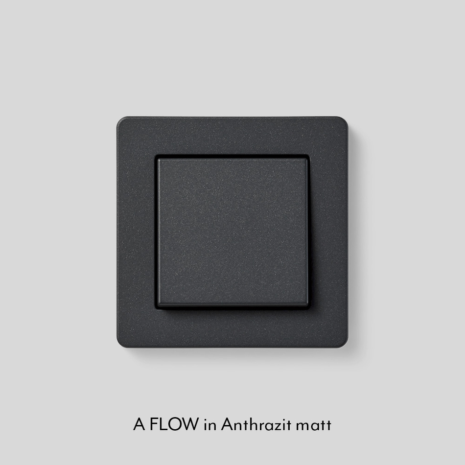 Die Schalterprogramme A CREATION, A 550 und A FLOW in Anthrazit matt bestehen zu 95 % aus Rezyklat nach DIN EN ISO 14021 und sind nachhaltig und ressourcenschonend. Das Rezyklat ist ein Material, das durch die Aufbereitung und Wiederverwertung von Kunststoffabfällen gewonnen wird. Im Recyclingprozess werden Wertstoffe gesammelt, sortiert, gereinigt und anschließend mechanisch zerkleinert. Dieses Material wird dann geschmolzen und zu Rezyklat verarbeitet, wie es in der DIN ISO 14021 beschrieben ist. Für diesen Prozess kommt Energie aus Wasserkraft zum Einsatz, um konsequent nachhaltig zu produzieren. Die so hergestellten Rahmen und Abdeckungen für Lichtschalter, Taster, Drehdimmer und Steckdosen von JUNG decken ein breites Anwendungsspektrum ab – von der konventionellen Installation bis zum Smart Home.